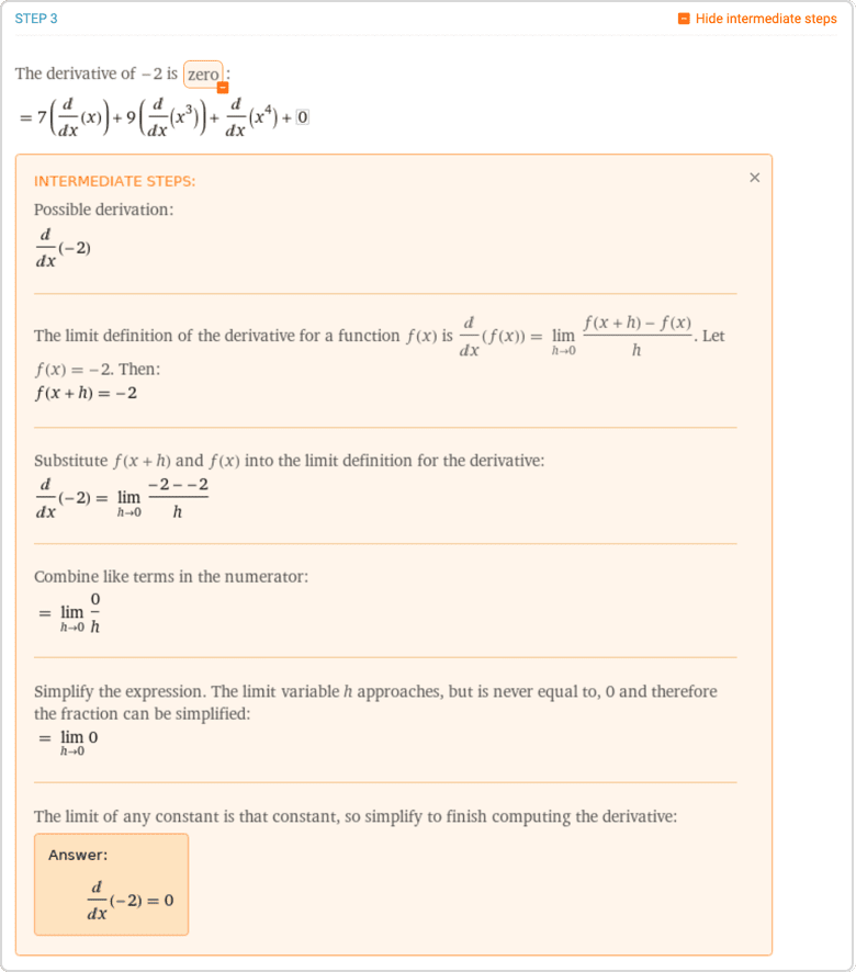 Break steps down even further with intermediate steps. These optional additional explanations for individual pieces of step-by-step solutions help guide you.